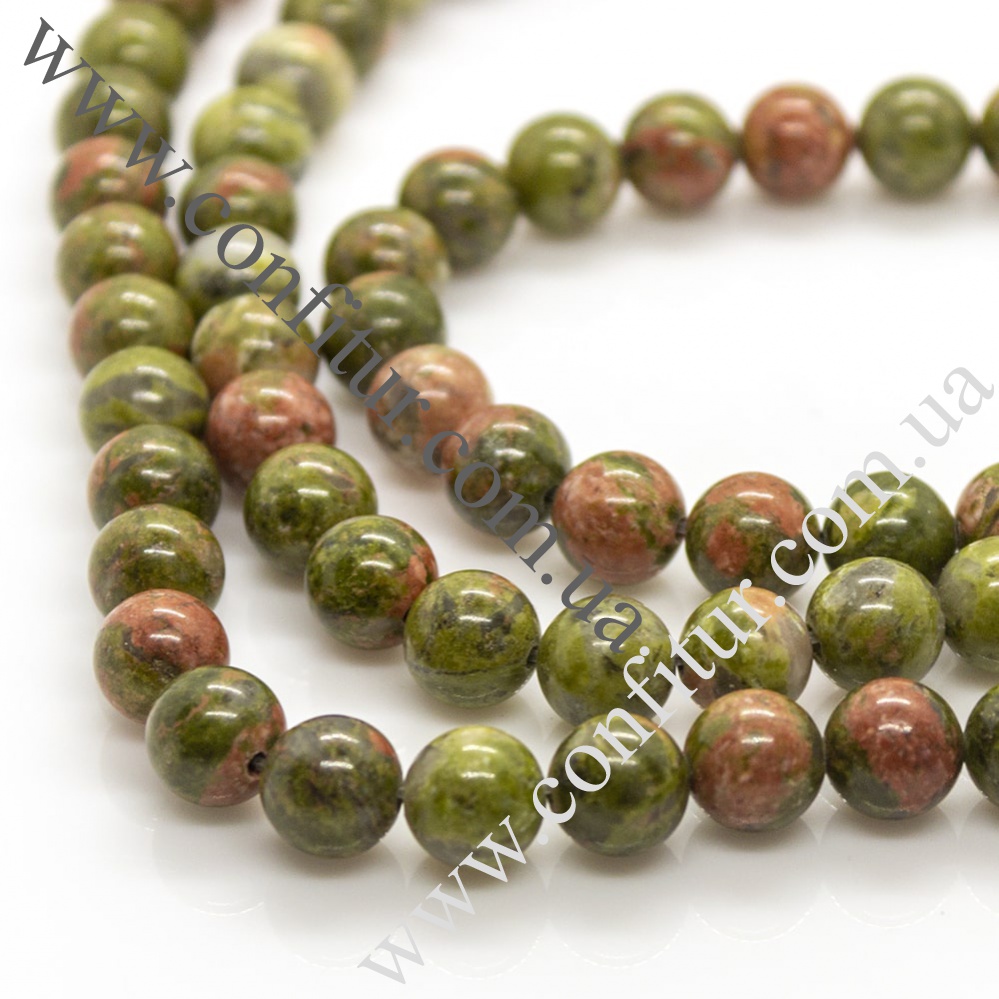Бусины 8 мм Унакит натуральный камень круглые зеленые, отв. 1 мм. В продаже по-штучно и упаковками. Идеально подойдет для Ваших творческих идей.
