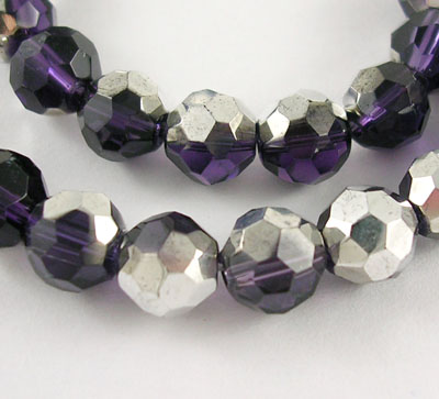 Бусины 8 мм стеклянные с серебристым покрытием, круглые, граненые, травяные, отв. 1 мм