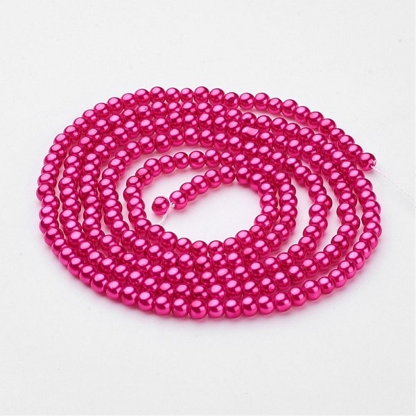 Жемчуг стеклянный, круглый, палево-красный, жемчужный. Диаметр - 4 мм, отверстие - 1 мм. В продаже поштучно и нитками.