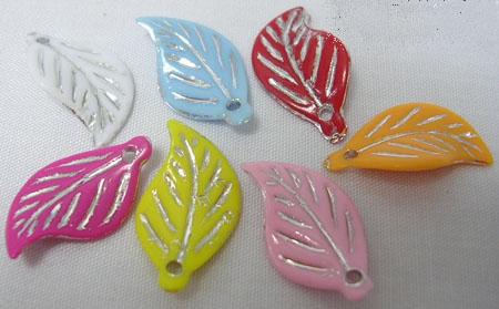 Прозрачные акриловые подвески, 26*19*3 мм, лист, микс цветов, Отв. 2 мм