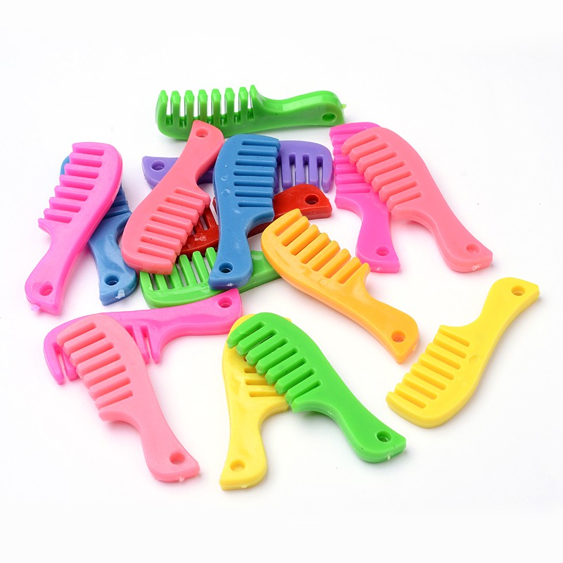 Подвески 56*19*6 мм акриловые непрозрачные, расческа, разноцветные, отв. 3,5 мм