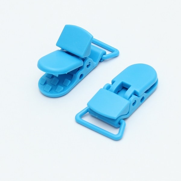 Замок-клипса для силиконовых бусин, 42х16х10, голубой. Изготовлен из высококачественного пластика. Обладает надежным фиксирующим механизмом. Подходит для крепления бусин и пустышек к коляске или к одежде малыша.