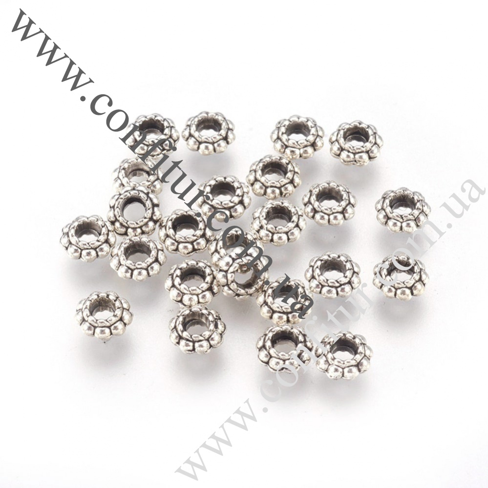 Разделители для бусин 6*3 мм бижутерный сплав тибетский стиль цветок античное серебро, отв. 2,5 мм. В продаже по-штучно и упаковками. Идеально подойдет для Ваших творческих идей.