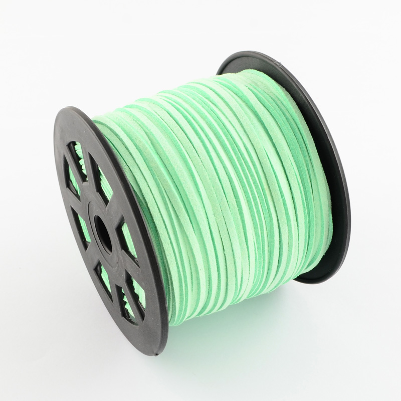 Шнур замшевый 3 мм толщина, 1,4 мм ширина, цвет: светло-бирюзовый, 90 м катушка Изготовлен из высококачественной искуственной замши. Отлично подходит для создания украшений, плетения и творчества.